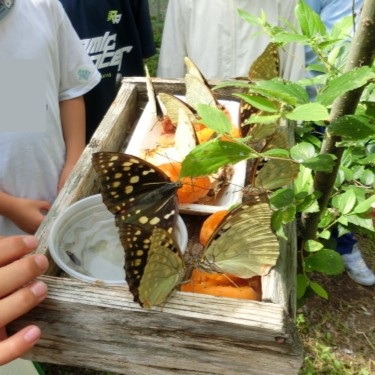ホタル学習と河川清掃、里山再生など、「他学年の活動から学んだこと」、地域の方に教わって体験したオオムラサキの飼育や、アゲハチョウの飼育から学んだ「命の大切さと力強さ」、校地内の荒地を開拓して作ったひまわり迷路や木々を使ったツリーハウス作りから学んだ「挑戦する大切さ」、地域の方や他学年と交流して学んだ「人とのつながり」、福祉教室で学んだ「人権に関する学習」等、身の回りにある事柄に働きかけた日々の学習について。